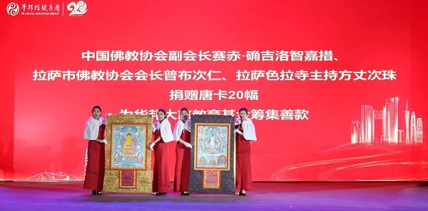 The love of great kindness shines forever. Saichi Quejiluozhigyatso, vice president of Chinese Buddhist Association, Pubuciren, President of Lhasa Buddhist Association, and Cizhu, abbot of Lhasa sera temple, donated 20 Thang-ga on site to raise money for Huabang Grand Charity Education Fund.