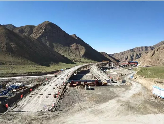 敦煌至当金山口高速公路大巴特沟特大桥地处海拔3400米的酒泉市阿克塞哈萨克族自治县境内,桥梁全长2.587km,桥面宽度12米。桥梁下部结构采用桩基础加薄壁空心墩、方墩和圆柱墩等形式,上部结构采用20米及40米预应力混凝土箱梁结构形式,最大桥墩高达63.5米,是甘肃境内高原气候条件下第一座特大桥。被誉为“陇上高原第一桥”。由国家科技进步一等奖获得者、中国建筑业500强、国家公路工程施工总承包特级企业西部中大建设集团股份有限公司承建。