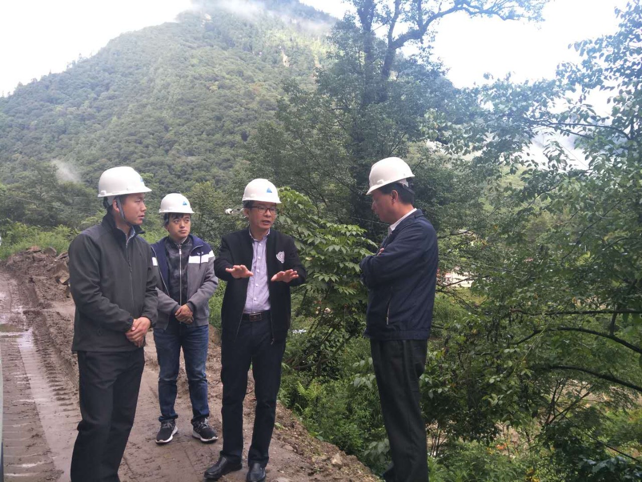 杨川总裁(右二)在项目工地指导工作