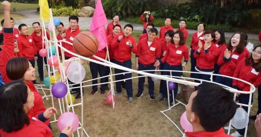 在“群龙取水”中,团队成员间同力协作,相互配合,见证团队成就个人目标的达成。