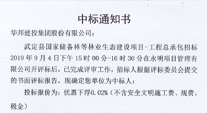 本次中标,积极响应了集团公司开发云南市场的号召,充分体现了公司“一业为主、多元发展”的经营理念,是华邦建投积极布局云南市场、继续扩大云南市场份额的又一重要一步。此次国家储备林的再次中标,意味着华邦建投的综合实力、技术水平、服务能力再次得到市场的认可,集团公司将以此中标为契机,以积极打造精品工程、模范工程、利民工程为目的,充分发挥自身综合实力和品牌优势,再接再厉,厚积薄发,再创辉煌业绩。