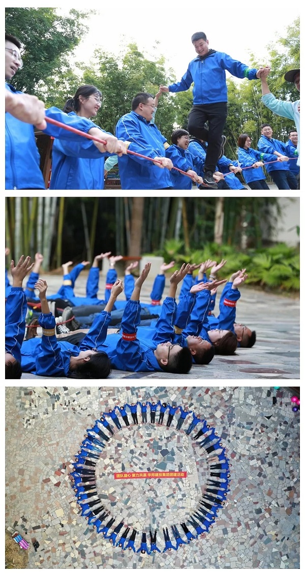 游戏比拼环节结束,一场考验团队协作能力的“动力圈”将整个团建活动推向了高潮。在“动力圈”环节,所有人围圈席地而坐,手拿绳索绷紧,在胸前比画出一个“同心圆”,挑战值1分钟100个,令人惊讶的是,在团队协作下,超额完成了140个,此处应有雷鸣般的掌声。随后,在团队中选出一员围绕绳索走一圈并分享感受和过程,看,我们的总裁助理蔡继荣被选上走圈时笑得多开心。