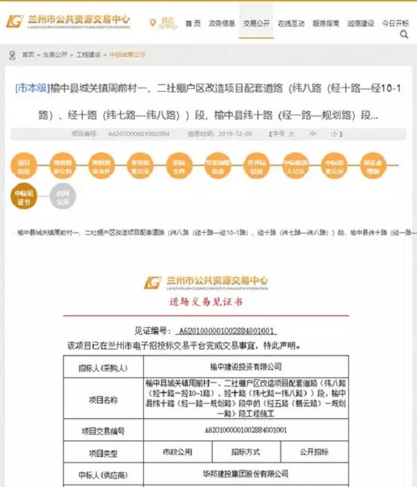 甘肃省兰州市榆中县城关镇周前村一、二社棚户区改造项目配套道路(纬八路(经十路—经10-1路)、经十路(纬七路—纬八路))段,榆中县纬十路(经一路—规划路)段中的(经五路(栖云路)—规划一路)段工程施工项目。工程内容包括道路、涵洞、给水、雨水、污水、照明、交通设施及绿化工程,道路路面为沥青混凝土路面。该项目为华体会在线登录官网-华体会online(中国) 在榆中县的首个中标项目,为集团公司未来在榆中地区的市场开发奠定了坚实基础。