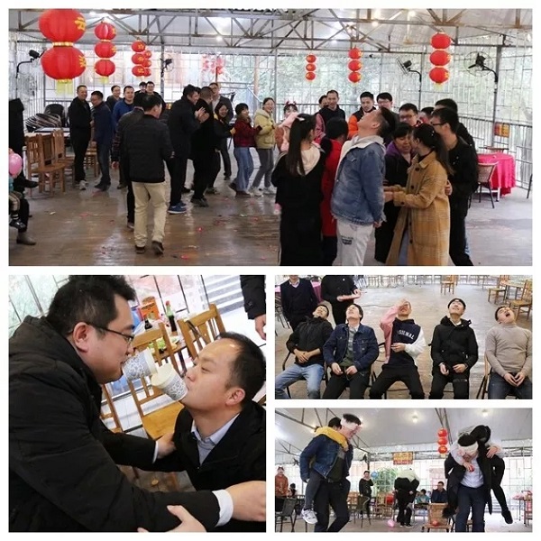在“猪八戒背媳妇”游戏中,由男女配合完成,既有比赛的紧张刺激,又笑料百出,惹得大家捧腹大笑;而通过“五毛一块”集体热身运动,大家迅速打成了一片,手拉着手尽情投入到活动当中。
