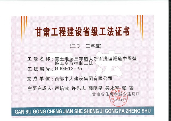 黄土地层三车道大断面浅埋隧道中隔壁施工变形控制工法