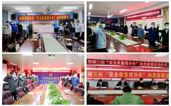“今天,我郑重宣誓:我是一名桂柳总包员工,我工作的安全和质量,关系到企业的发展和荣誉!我郑重承诺:忠诚企业、恪尽职守、珍爱生命、铸造精品……”。在桂柳总包及所属各项目启动会现场,复工人员宣誓声铿锵有力,庄严承诺掷地有声,各项目部负责人分别汇报了“安全质量提升年”活动的部署落实情况并表示,将以此次活动为契机,落实项目质量安全主体责任,将质量安全工作引入新的起点,为建设“安全好、质量好、效益好、形象好”的桂柳高速打下坚实基础。