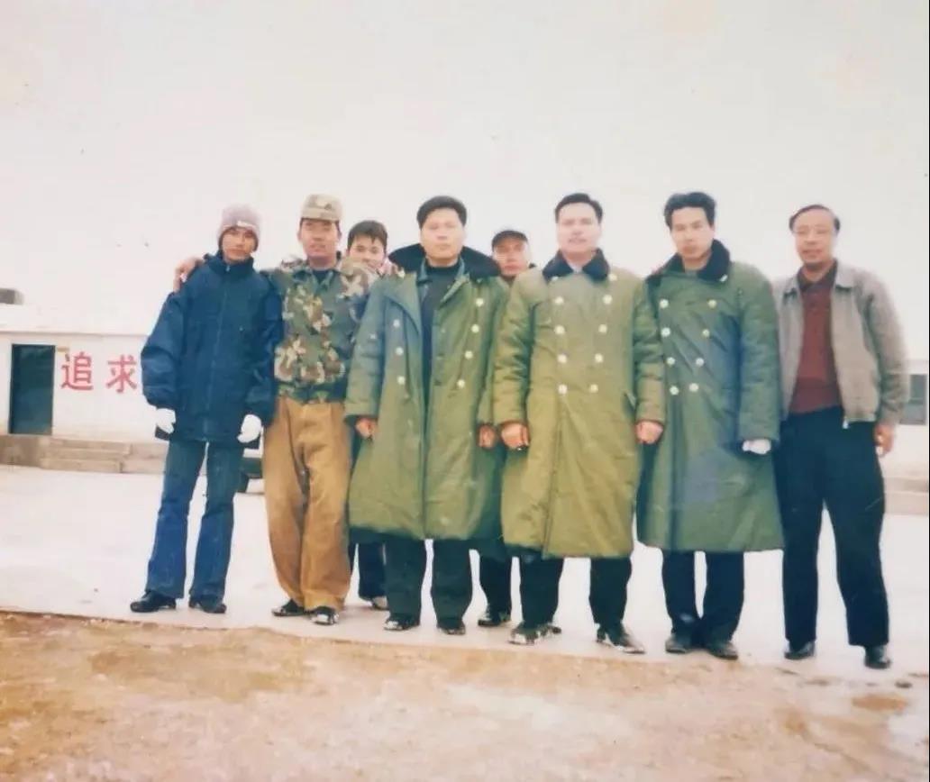 2003年,何妃茂(右三)与兰临高速路面项目团队合影