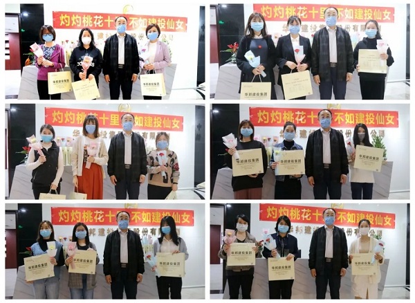 “灼灼桃花十里,不如建投仙女。”人间三月,正是桃花盛开的季节。十里春风,唯笑容与女神不可辜负。在华邦建投广州管理总部,每位女神都能收到不老男神送出的一束花和一个精心准备的礼物。拍合照的时候,虽说受疫情影响,不能集聚,大家都戴着口罩,看不到脸上的酒窝,但通过女神眼角洋溢着的笑容,我们也能感受到甜甜的春风。