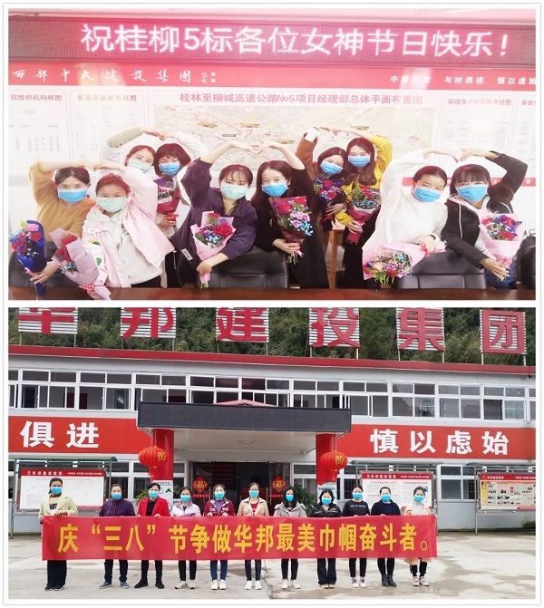 有这么一群美丽的女性,她们在平凡的岗位上展现巾帼风采,在生活里,她们尽显女性之美。“春风拂面,笑靥如花。” 在喜易达公司,每位女神都收到了一份公司精心准备的礼物。拿到沉甸甸的礼物,每个女神都笑靥如花,心情棒棒哒。在桂柳五标,青春洋溢芳华,领到礼物的女神比心合影。巾帼不让须眉,在桂柳三标,女神们在室外拉起横幅,争做华邦最美巾帼奋斗者。