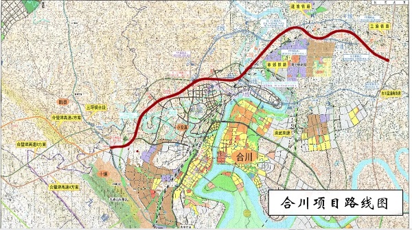 重庆合川项目全长27.222 公里,合同总价37.36亿元,建设期4年。该项目是重庆市三环十二射七联线高速公路网中的六联线向北的延伸线,连接三环铜合高速公路、合川小安溪、渭坨物流园、大石镇及合川至安岳高速公路,是重庆西北部率先实现公、铁、水、空联运,建设渝新欧物流大通道桥头堡,加速“一带一路”建设的需要。是打造区域旅游集散中心,促进项目区域内旅游业发展的需要。