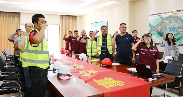 随后,楚雄民中项目总承包部经理姚军带领现场人员进行安全宣誓,一句句铿锵有力的誓词,喊在嘴上,记在心里,落实到实际中。“我们将本着对自己负责,对工人负责的态度,以‘安全第一、预防为主、综合治理’的安全生产方针为准则,打造安全文明的民中项目。”宣誓完毕后,员工们纷纷表示。