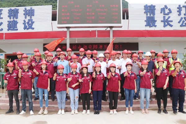 ▲ 苏如春在永福屯隧道前与一线员工合影