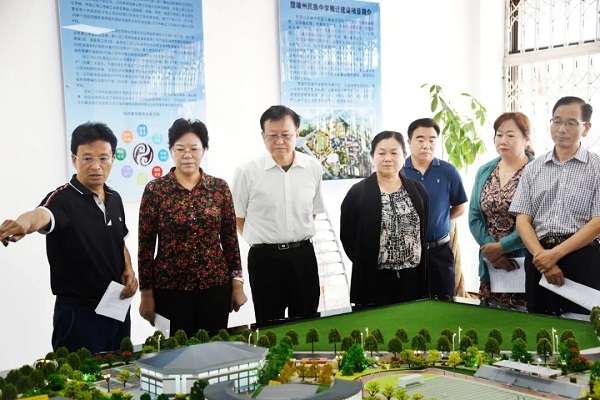 ▲ 王树芬(左三)一行参观民中项目沙盘