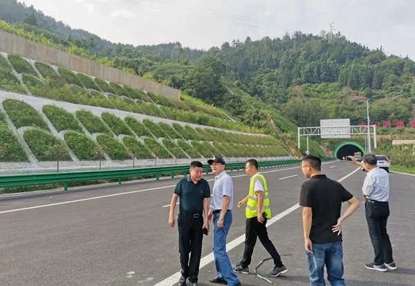 ▲ 检查组现场检查平镇项目路基、边坡