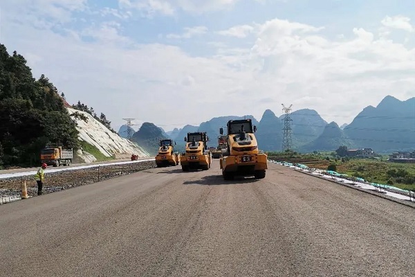 ▲ 桂柳路面3分部摊铺垫层完成1.3万㎡