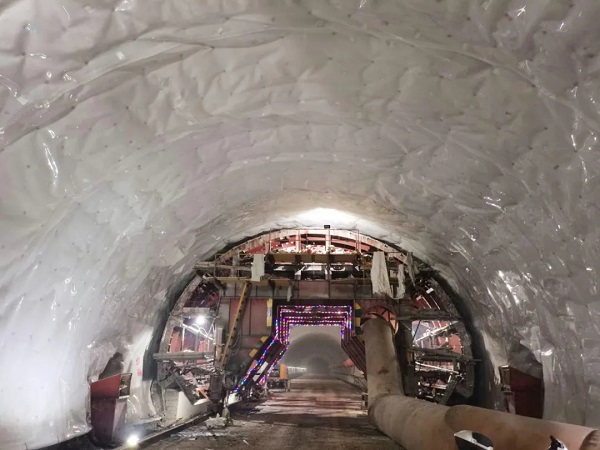 ▲ 麻地隧道右洞二衬防水板铺设