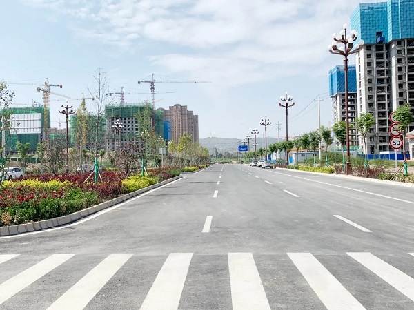 华邦建投榆中市政项目包含榆中县城关镇周前村一、二社棚户区改造项目配套道路(纬八路(经十路—经10-1路)、经十路(纬七路-纬八路)段,榆中县纬十路(经一路—规划路)段中的(经五路(栖云路-规划一路)段工程,道路全长共计866.734米。项目自开工建设以来,华邦建投在榆中县委县政府的支持下,克服了工期紧、任务重、征地拆迁等重重困难,实施过程严控工程质量,强推工程进度,紧抓施工安全,高质量圆满完成建设任务。