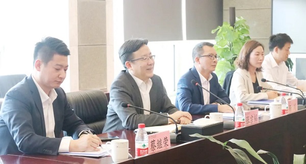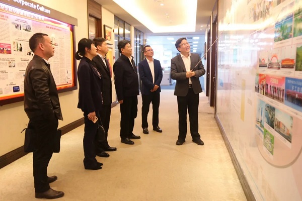 ▲ 张宗韬(右一)向方联民(右三)介绍华邦发展情况