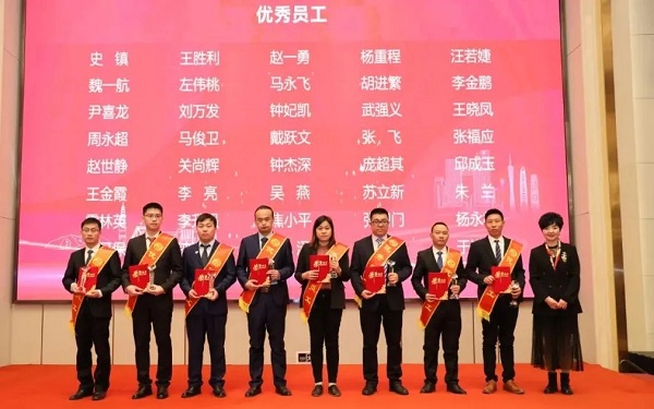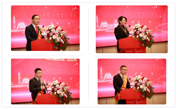 为2020年度“市场开发奖”代表颁奖并合影颁奖过后,四名优秀员工代表纷纷走上舞台,他们讲诉了自己与企业共成长的故事,表达了对所在团队以及企业的感谢和祝福。发言中,各代表分享了优秀的工作经验和方法,并表示将继续开拓创新、同心同行,把获得的荣誉作为新的起点,在今后的工作中再接再厉、再创佳绩。
