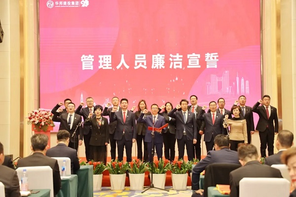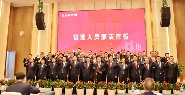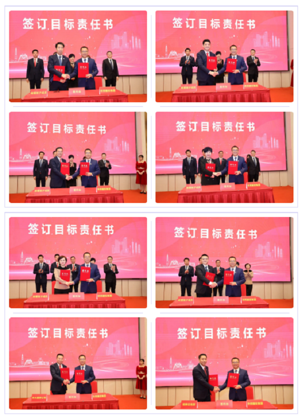 在签订目标责任书环节,杨川分别与经营班子成员、各分子公司、事业部、总承包部负责人签订2021年度目标责任书并庄严宣誓,表示将坚决履行岗位职责,认真执行管理制度,严格恪守职业操守,认真完成全年工作任务和目标,并接受全员监督,为缔造社会尊敬的百年华邦而努力奋斗。