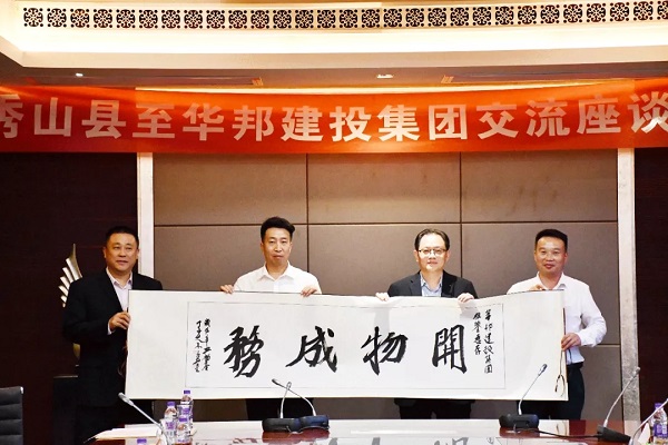 ▲ 付强(左二)希望华邦建投充分发挥企业自身优势,助力秀山迈入发展快车道。