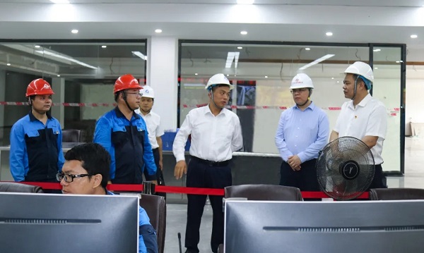 ▲ 张仁建(中)在控制室了解项目运行状况