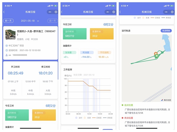 华邦建投在机械设备信息化管理方面的探索从未止步。由于集团工程作业面积大,机械设备繁多,如何有效监管机械设备和提高设备利用率一直是项目管理的“老大难”问题。为解决这一问题,华邦建投将目光锁定在“物联网+人工智能”,利用该技术对项目机械设备运行状态、工作时间、地理位置、油耗、台班签认等管理行为进行有效管控,提升设备管理人员工作效率。