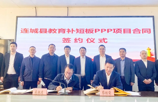12月10日,华体会在线登录官网-华体会online(中国) 与福建省连城县教育局举行连城县教育补短板PPP项目合同签约仪式,标志着项目进入了实质性推进阶段,这对于进一步推动当地教育事业发展具有重要意义。连城县政协党组书记陈荣斌,华体会在线登录官网-华体会online(中国) 执行总裁蔡继荣等参加签约仪式。