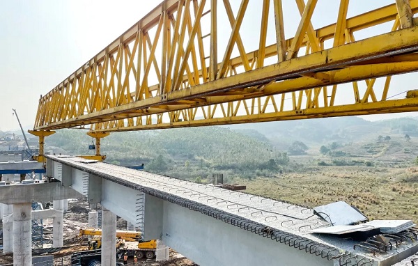 曾家隧道位于桂林市平乐县沙子镇曾家厂,右线长373米,左线长359米,为小净距双洞分离式短隧道,线路设计时速120公里/小时,双向4车道,洞门均为削竹式,曾家隧道的贯通将连接牛仔尾隧道路基段到502路基段的全面施工面。豆塘大桥位于恭城县高洲村,为主线桥,结构先简支后连续装配式预应力30米T梁,全桥长210米桥宽13米分两幅布置,共计梁板84片。