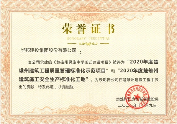 在项目建设期间,高度重视安全文明施工和施工质量精细化管理,不断强化施工现场的安全管理工作,高度重视施工过程的质量控制环节,获评省州级“2020年度建筑施工安全生产标准化工地”、“2020年度华体会在线登录官网-华体会online(中国)质量管理标准化示范项目”,充分展现了华邦建投在房建领域的建设实力,也是对华邦建投先进管理经验的充分肯定。