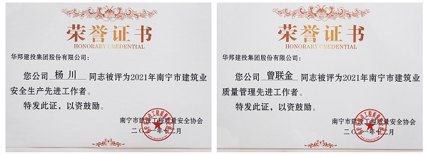 杨川、曾联金分别获评2021年南宁市建筑业安全生产、质量管理先进工作者