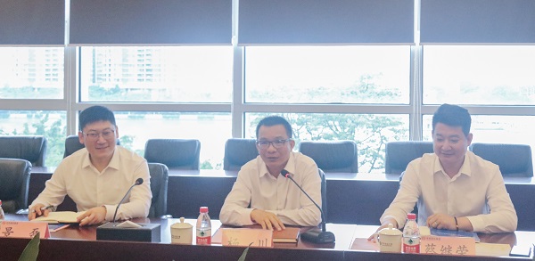 杨川向郑磊(中)、彭家远(左一)介绍华邦基本情况