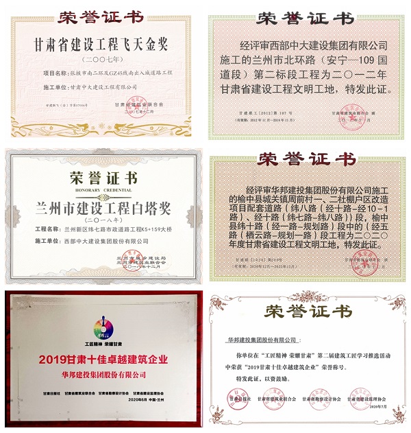 先后获得甘肃省建设工程飞天金奖、兰州白塔奖等殊荣,截至目前,在甘承建的公路总里程已达800公里。在建项目有G312线傅家窑至苦水公路、榆中教育园区项目、榆中第一人民医院项目、榆中县和平开发区水利项目、两当金洞小学项目、玉门东镇至老市区红色旅游公路、玉门市清泉乡与赤金镇人居环境提升改造项目、玉门市花海镇大畅河日光温室产业园项目、永昌县农田建设项目、永昌县第一高级中学项目、永昌县乡村振兴项目等二十多项重点民生工程。