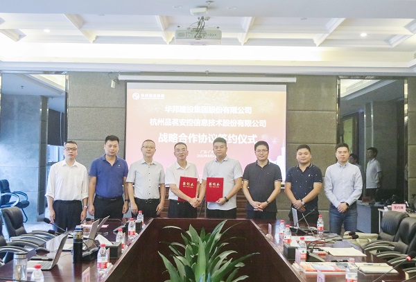 8月4日,华体会在线登录官网-华体会online(中国) 与杭州品茗安控信息技术股份有限公司(以下简称:品茗股份)在广州签订战略合作协议。双方将在智慧工地、技术标准等方面深入开展合作。品茗股份副总裁陈飞军;华体会在线登录官网-华体会online(中国) 总裁助理周青等见证此次签约。
