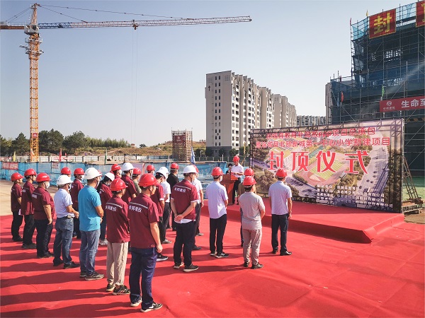 育项目总承包部等人员参加封顶仪式。