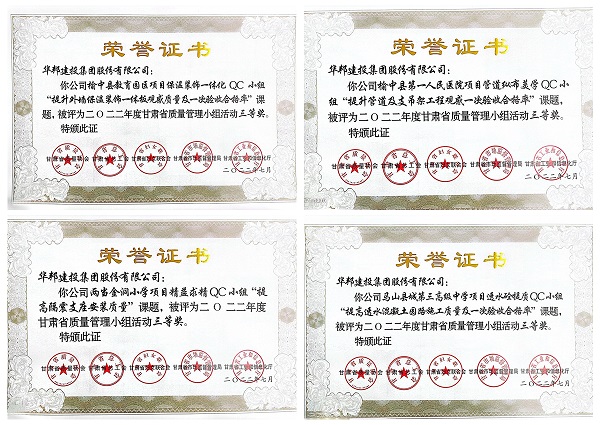 认真组织各项目开展质量课题研究,要求各项目根据质量管控重点分别成立QC小组,各小组通过课题选定、现状调查、数据整理分析、活动目标制定、对策实施、效果检查等步骤,深入开展项目过程质量管理活动。最终,经过企业筛选及专家评定,榆中教育园区、榆中医院、两当小学、马山中学四个项目QC小组申报的课题成果获得2022年度甘肃省质量管理小组优秀奖项。