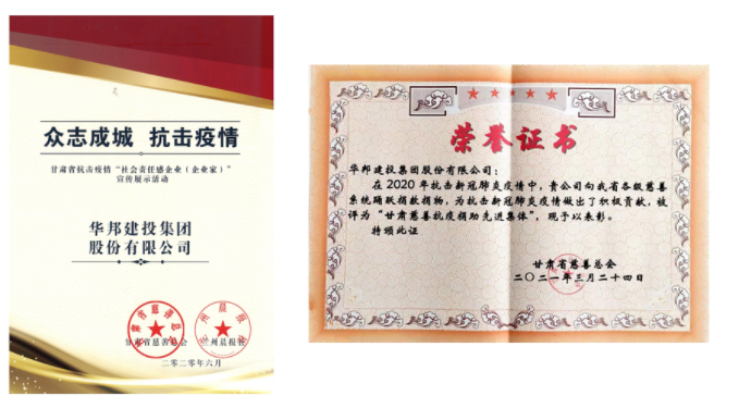 “甘肃省抗击疫情社会责任感企业”“甘肃慈善抗疫捐助先进集体”称号