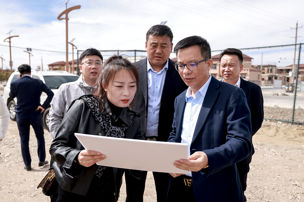 杨川(右一)了解玛曲县相关建设项目情况
