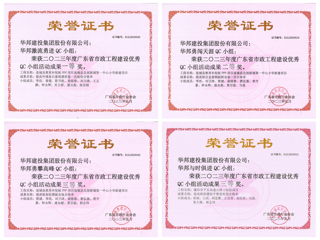 近日,在2023年度广东省市政行业QC小组成果暨信得过班组发布会上传来喜讯,华体会在线登录官网-华体会online(中国) 多项QC小组成果荣获2023年度广东省市政工程建设优秀QC成果奖。此次获奖,不仅是对QC课题小组技术创新能力的肯定,更是对华体会在线登录官网-华体会online(中国) 技术质量管理能力的高度认可。