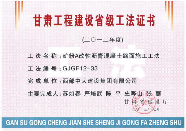 矿粉A改性沥青混凝土路面施工工法