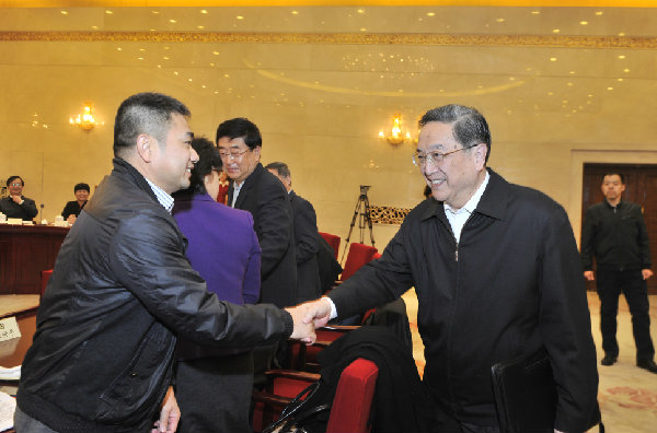 全国政协主席俞正声(右)与苏如春委员(左)亲切交流