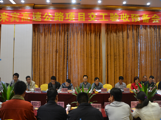 交工验收在预备会议上成立了桂平至来宾高速公路工程项目交工验收委员会,并将委员分为总体组、桥梁组、隧道组、路基路面组、机电组、交安组、房建组、内业组七个小组,对工程实体、合同执行情况、质量检测报告、施工自检报告、施工总结及施工材料等进行了详细的分类检查。检查后的总结会议上委员会听取了我公司、监理、设计单位代表的总结汇报。广西壮族自治区交通工程质量监督站科长莫剑忠对此次交工验收监测情况和结果作了通报,他充分肯定了桂来高速公路各参建单位在项目建设期间面对诸多不利因素和困难,主动克服作为,付出了极大的心血和汗水,同时也对桂来路取得的成绩表示了认可。