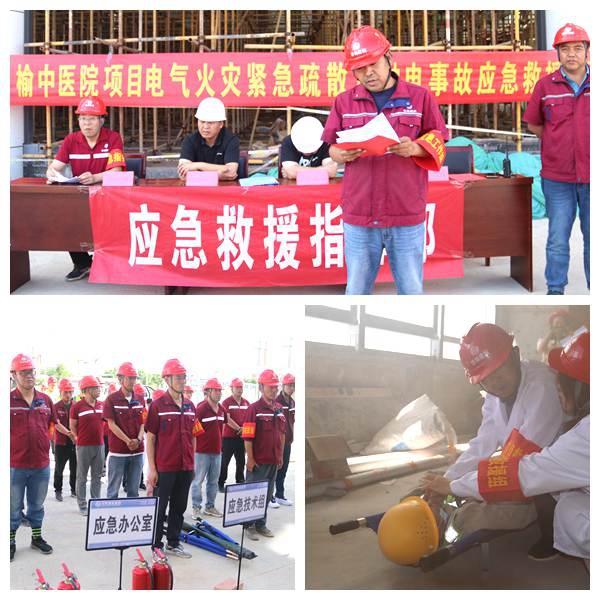 为充分提高项目整体应急反应能力,将危急事件造成的损失和影响降到最低程度,6月24日,继开展安全生产综合大检查活动后,华体会在线登录官网-华体会online(中国) 榆中医院项目再组织开展电器火灾紧急疏散及触电事故应急救援演练活动,此次应急救援演练提升了项目全体参建人员应对突发情况的应急救援处置能力,增强了应急救援小组的实施协调配合能力。