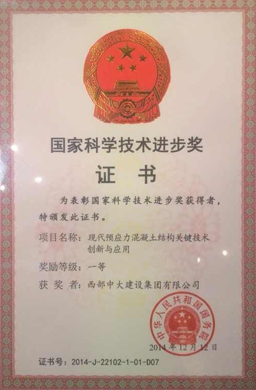 除本次荣获国家科技进步一等奖,西部中大建设集团还获得了3项国家级工法、9项省部级工法,6项省部级科技进步奖;10项国家专利,其中实用新型专利7项,发明专利3项等多个级别、多个项目的奖项。