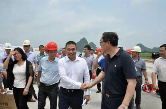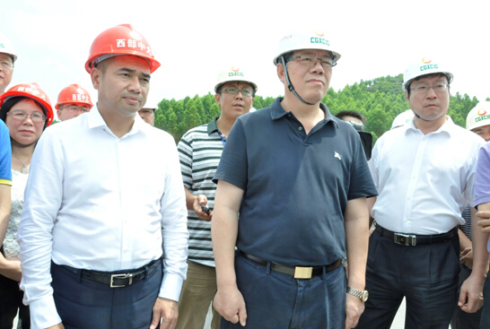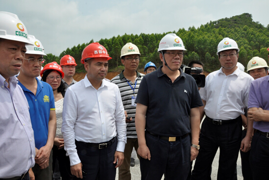 5月26日,自治区政府副主席陈刚率队深入集团公司承建的广西柳州至武宣高速公路建设一线调研指导工作,全国政协委员、华邦控股集团董事局主席苏如春、西部中大建设集团总裁周雍玫、副总裁唐勇等集团公司领导陪同调研。