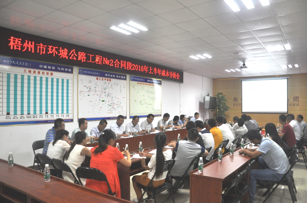 为进一步强化项目全员成本管理意识,完善项目成本管理措施,认真总结上半年项目成本管理过程中存在的一系列问题,汲取经验教训,结合集团公司在上半年工作会议上成本管理工作的总体要求,7月21日,梧州市环城公路工程№2合同段总承包项目部召开了2016年上半年的成本分析会。总承包部部门以上领导、各工区领导班子、财务部门、经营核算部相关人员30余人参加了会议。