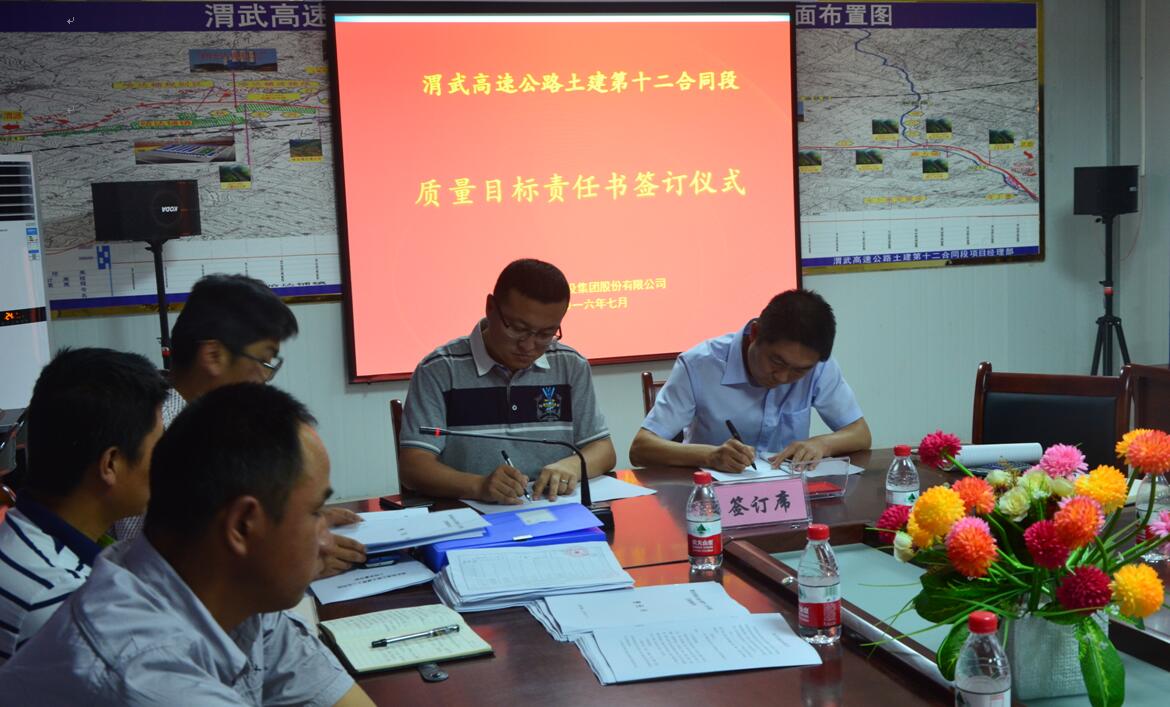 最后,会议举行了“渭武高速公路12标质量目标责任书签订仪式”,进一步明确了质量管理职责和质量管理架构,为接下来项目整体质量管理工作的提升打下了坚实基础。