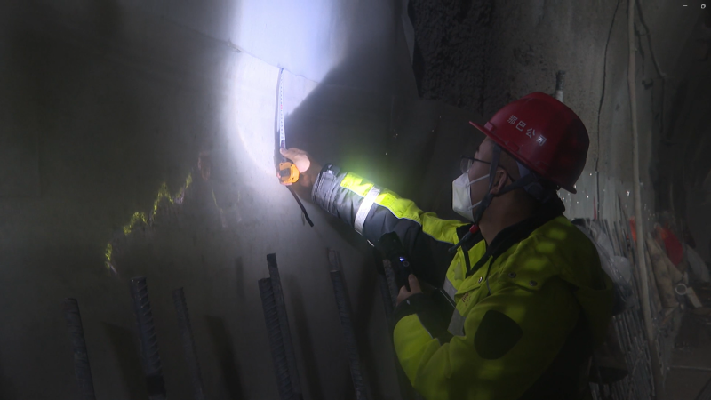 他紧紧跟在3名施工工人身旁,每一块防水板的铺设,他都用卷尺细致丈量,确保接缝焊接面宽度大于1公分,同时仔细检查焊接面是否存在断焊,保证焊接的连续性。这防水板宽3米,环隧道一圈长达24米,意味着每3米就有一道24米长的焊接缝,如此巨大的工作量,需要的不仅是耐心与细致,更考验着他的责任心与担当。