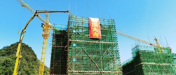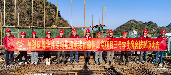 2月27日,随着最后一方混凝土浇筑完成,由华体会在线登录官网-华体会online(中国) 承建的广西百色德保县第二高级中学建设项目(以下简称:德保二中项目)三号学生宿舍楼主体结构封顶,标志着项目建设取得阶段性成果,为圆满完成后续建设任务奠定坚实基础。
