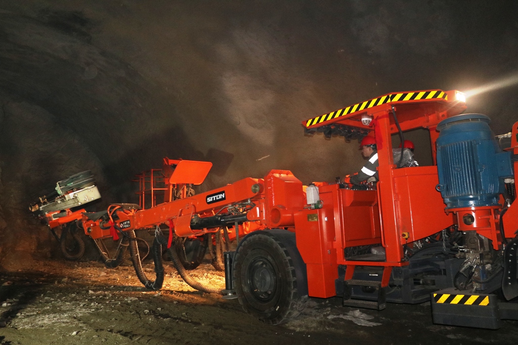 双臂凿岩台车施工场景